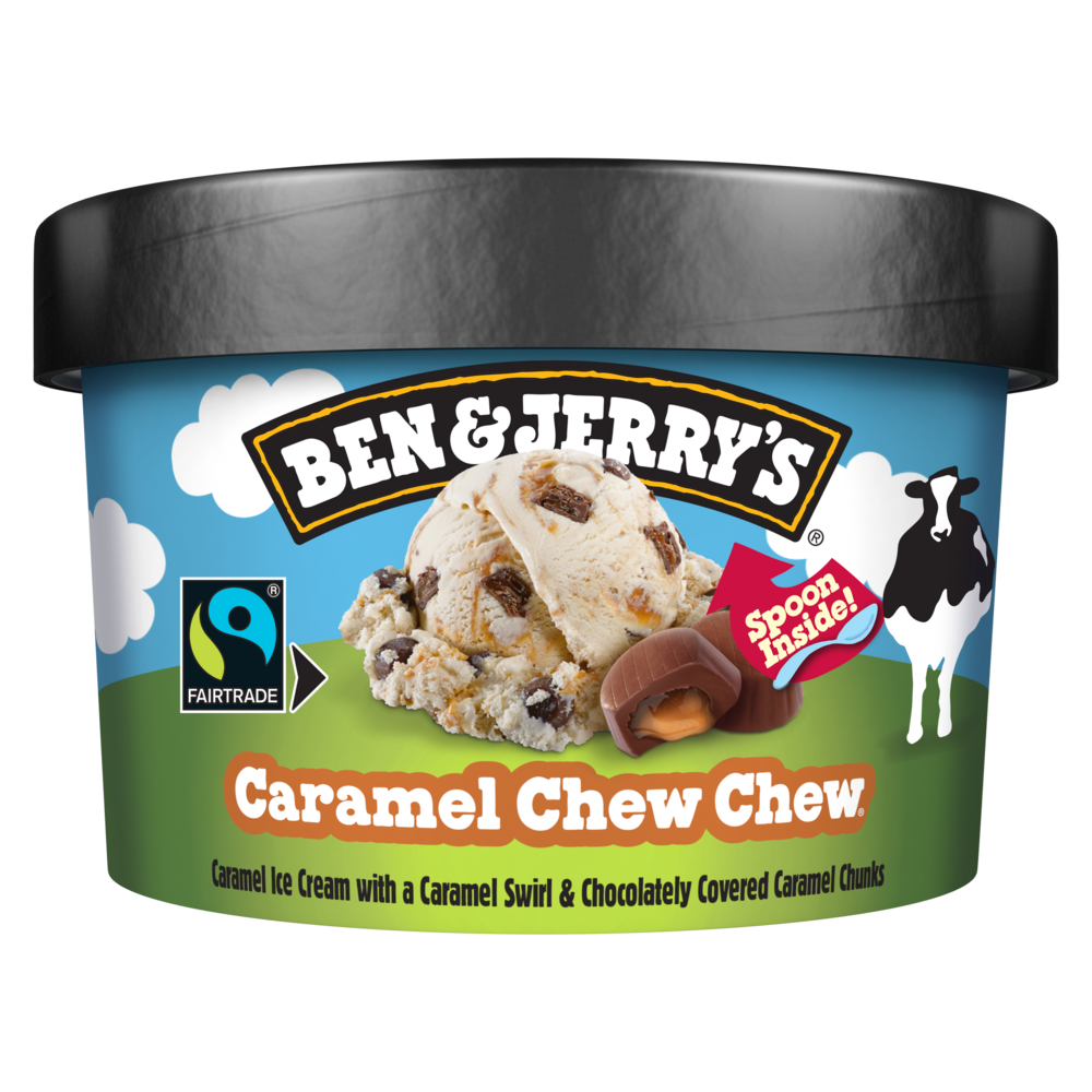 | Bestel nu de Caramel Chew Chew Mini cup, heerlijk karamelroomijs met een swirl van karamel en choco-karamel chunks! | |