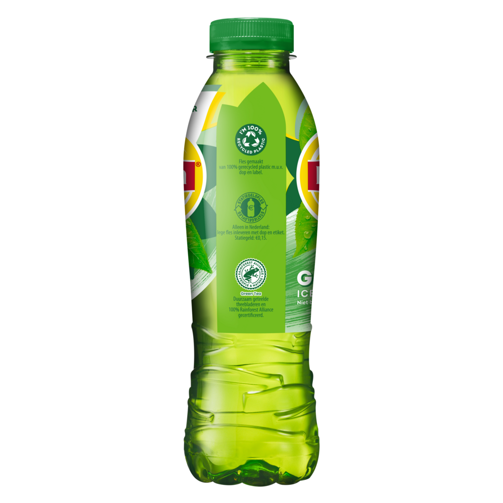 | Water, fructose, suiker, voedingszuren (citroenzuur, appelzuur), groene thee-extract(1) (0,12%), zuurteregelaar (trinatriumcitraat), antioxidant (ascorbinezuur), natuurlijk aroma, zoetstof (steviolglycosiden van Stevia). (1)Rainforest Alliance Certified. More information on ra.org. | |