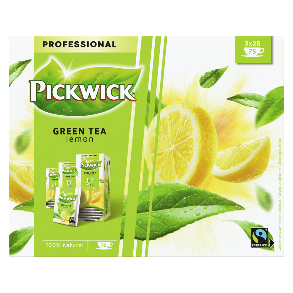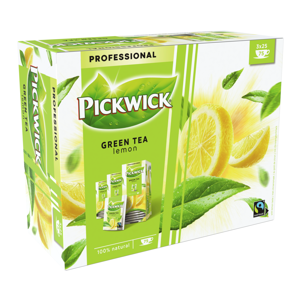 Ervaar de verfrissende smaak van Groene Thee Lemon van Pickwick en geniet van de heldere en levendige aroma's.