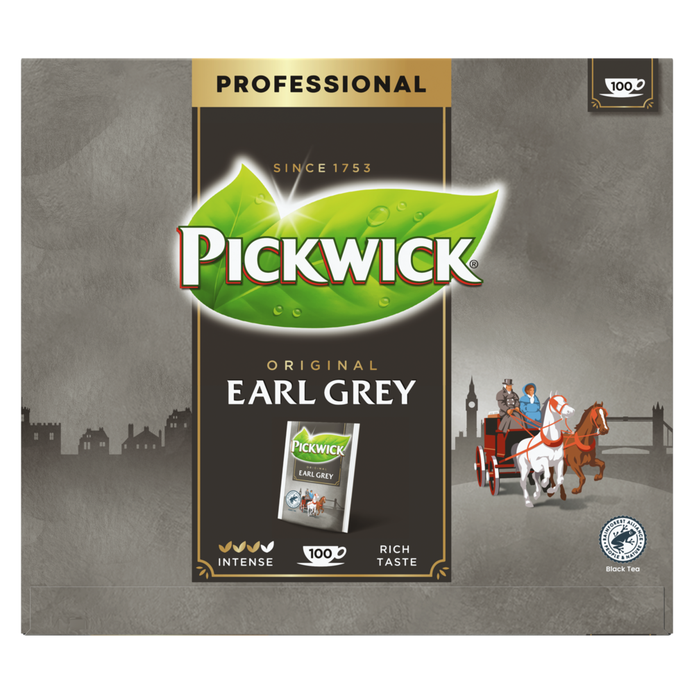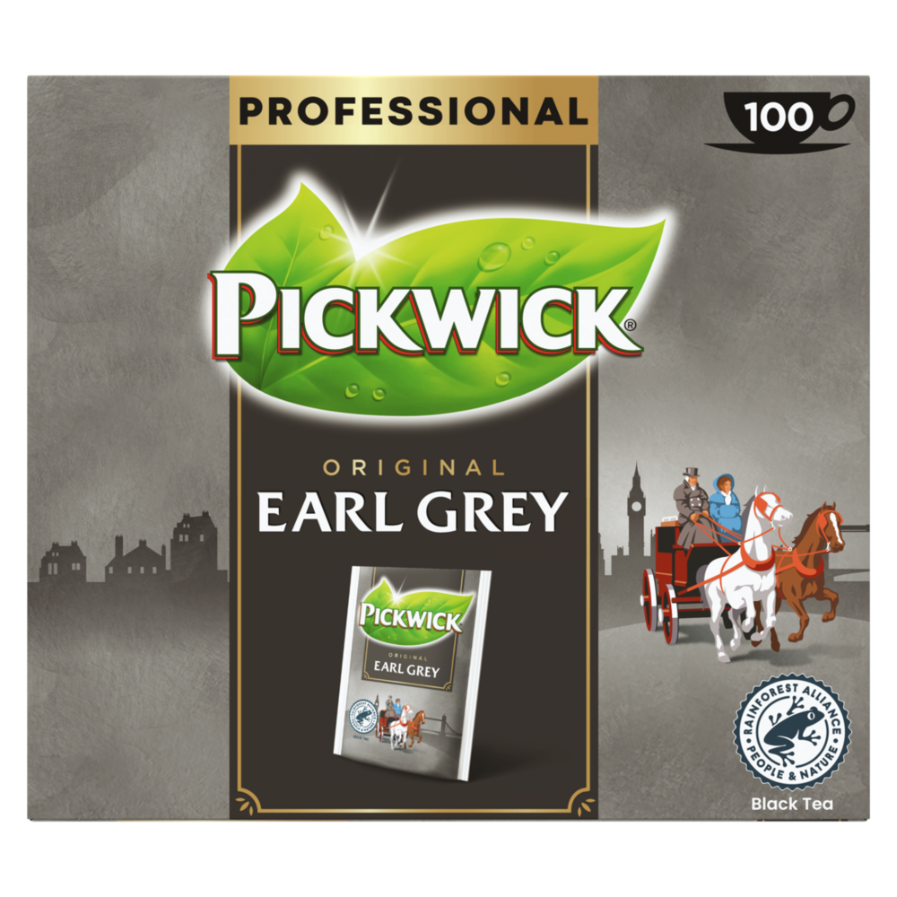 Ervaar de verfijnde charme van de Earl Grey thee van Pickwick. Deze klassieke thee is een harmonieuze combinatie van hoogwaardige zwarte thee en de delicate citrusgeur van bergamot.