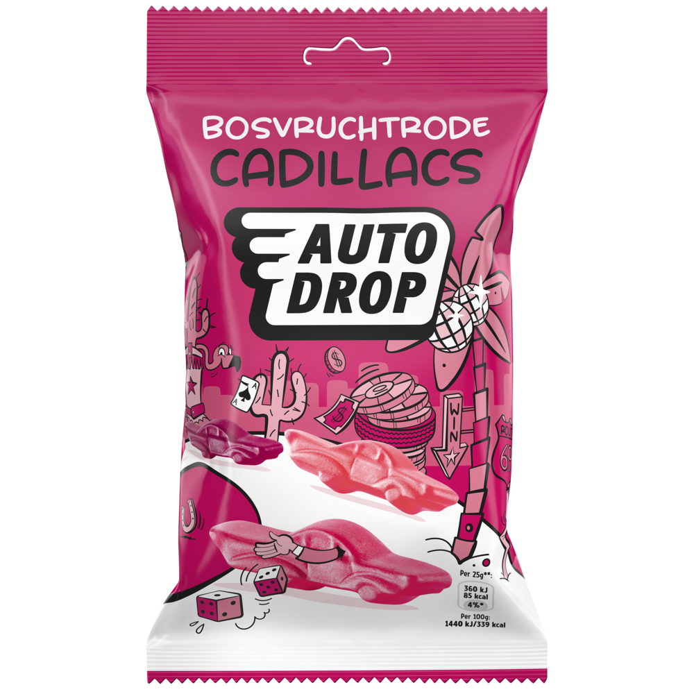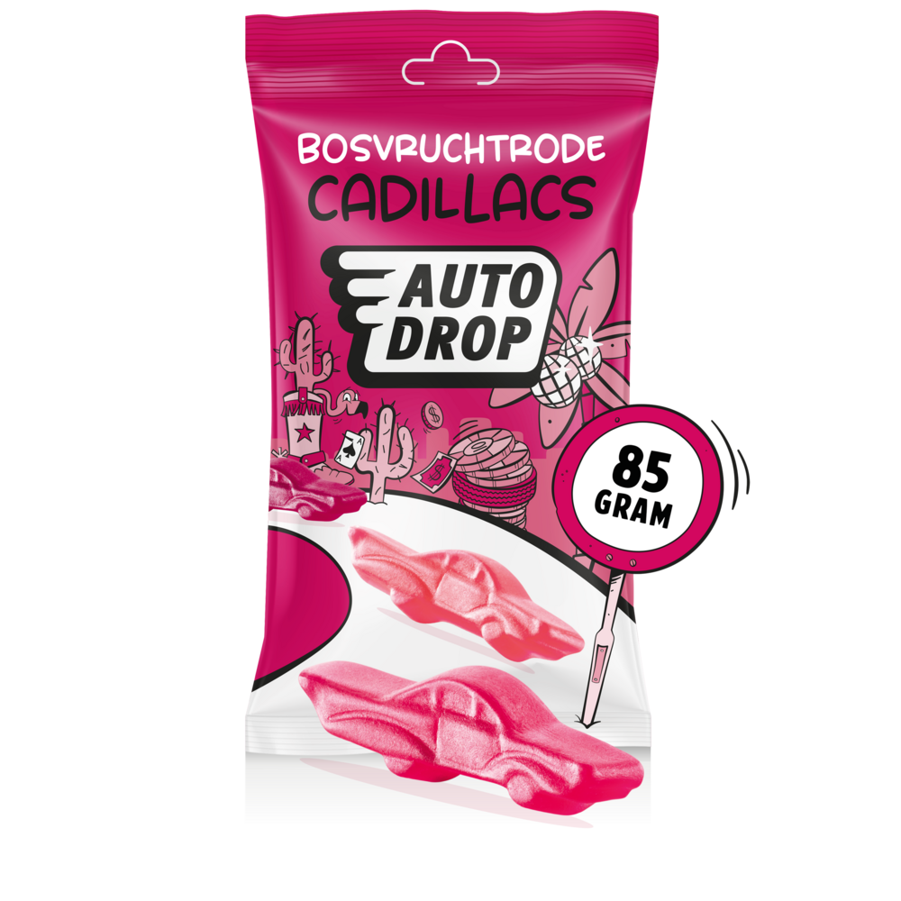 Rode Cadillacs van Autodrop zijn de ultieme traktatie voor liefhebbers van fruitige snoepjes. Deze heerlijke rode autootjes zijn gevuld met een explosie van smaak.