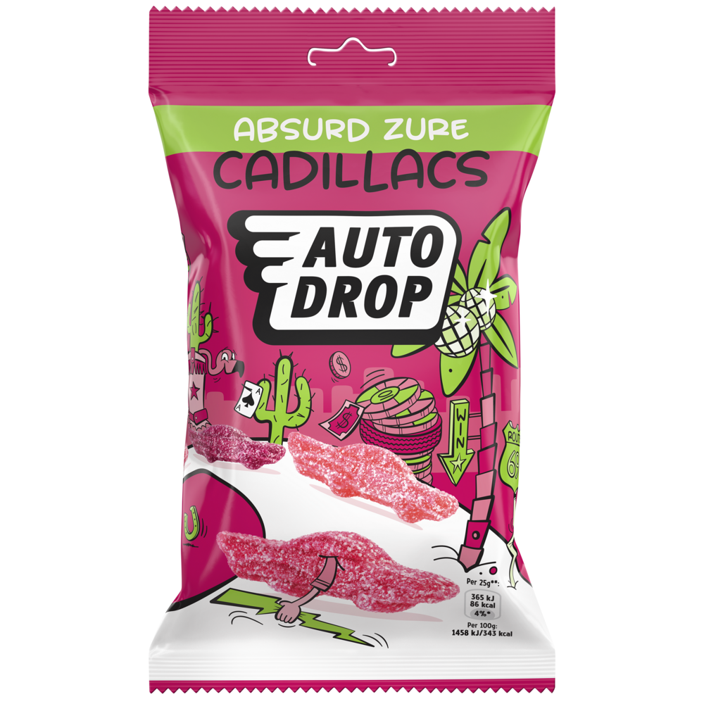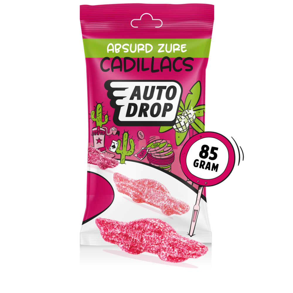 Zure Cadillacs van Autodrop zijn de perfecte keuze voor liefhebbers van intense, zure smaken en verfrissende snoepjes. Deze iconische dropjes zijn geïnspireerd op de klassieke Cadillac-auto's en bieden een smaakvolle rit vol avontuur.