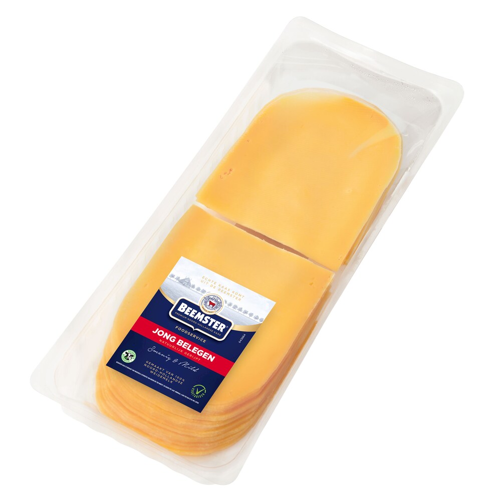 Ontdek de heerlijke smaak van jong belegen kaas van Beemster, verpakt in handige porties van 50 plakken.
